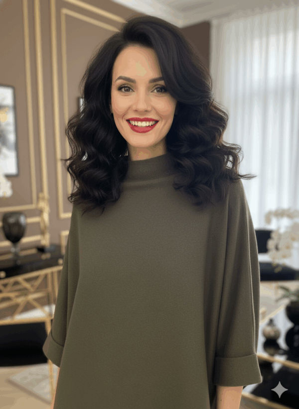 A magas nyakú kialakítás elegáns, mégis praktikus, így irodai viseletként és hétköznapi outfitek részeként is remekül megállja a helyét. A 3/4-es ujjhossz és a rugalmas anyag biztosítja, hogy mindig komfortosan érezd magad benne, bármilyen testalkattal is rendelkezel.