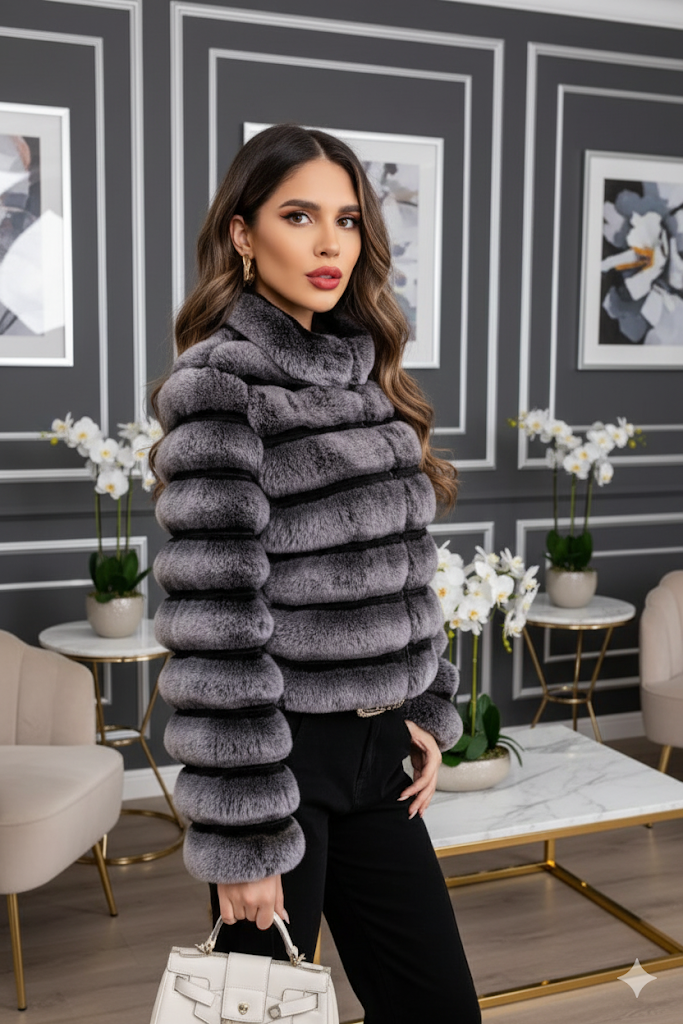 Az Isabella szőrme bunda igazi luxus hatású darab, amely minden megjelenést kifinomulttá és elegánssá varázsol. A magasnyakú szabás klasszikus és letisztult vonalvezetést biztosít, amely bármilyen alkalomhoz illik.