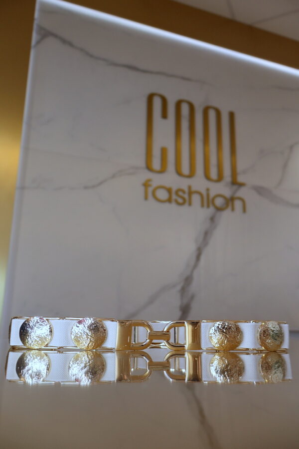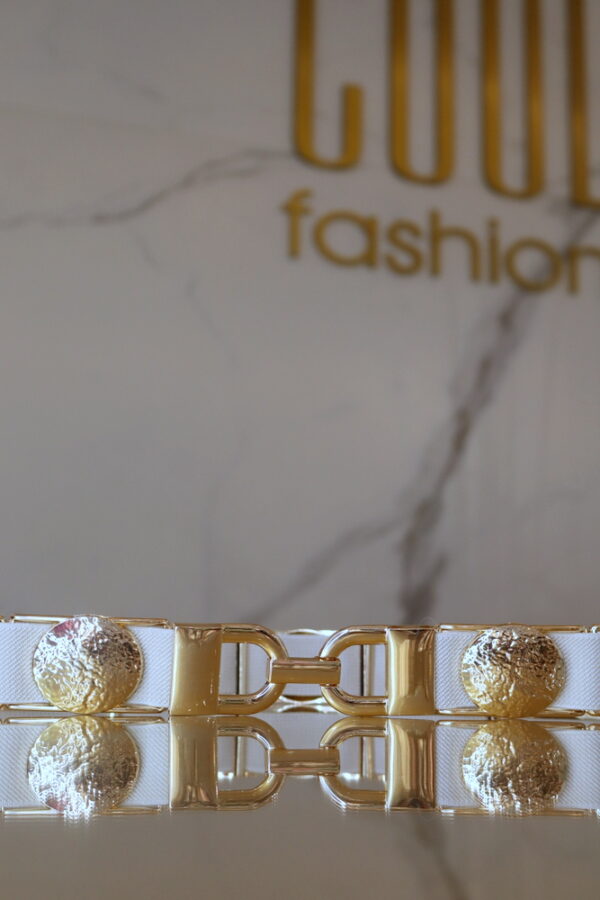 A Isadora D csatos gumis öv egy igazán különleges darab, amely kifinomult stílust csempész bármely öltözékbe. A keskeny, gumis kialakítás kényelmes viseletet biztosít, miközben lágyan formálja a derekat. A dupla D mintás arany fém csat látványos részlet, amely azonnal magára vonzza a tekinteteket, és különösen elegánssá varázsolja a megjelenést.