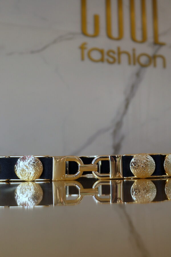 A Isadora D csatos gumis öv egy igazán különleges darab, amely kifinomult stílust csempész bármely öltözékbe. A keskeny, gumis kialakítás kényelmes viseletet biztosít, miközben lágyan formálja a derekat. A dupla D mintás arany fém csat látványos részlet, amely azonnal magára vonzza a tekinteteket, és különösen elegánssá varázsolja a megjelenést.