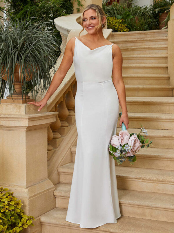 Ha egy olyan ruhát keresel, ami egyszerre modern, visszafogott és ellenállhatatlanul nőies, ez a letisztult sellő fazonú darab telitalálat. A finoman kámzsás nyakrész és a vékony spagetti pántok elegáns keretet adnak a felső résznek, míg a derékban szabott kialakítás és a sellő vonalvezetés gyönyörűen kiemeli az alakot. Tökéletes választás irodába egy blézerrel, randira egy magassarkúval, vagy alkalmi eseményre statement ékszerekkel.