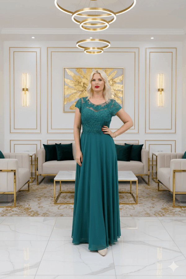 Ez a ruha ideális választás lehet esküvőkre, keresztelőkre, ünnepi vacsorákra vagy más különleges alkalmakra, ahol fontos a kifinomult és csinos megjelenés – molett hölgyeknek tervezve, szeretettel.