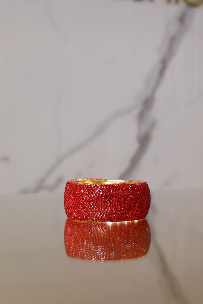 A Larina strasszos fém karkötő elegáns és látványos kiegészítő, amely csillogó részleteivel és merev kialakításával kiemeli a stílusodat.