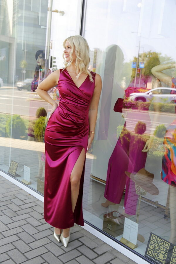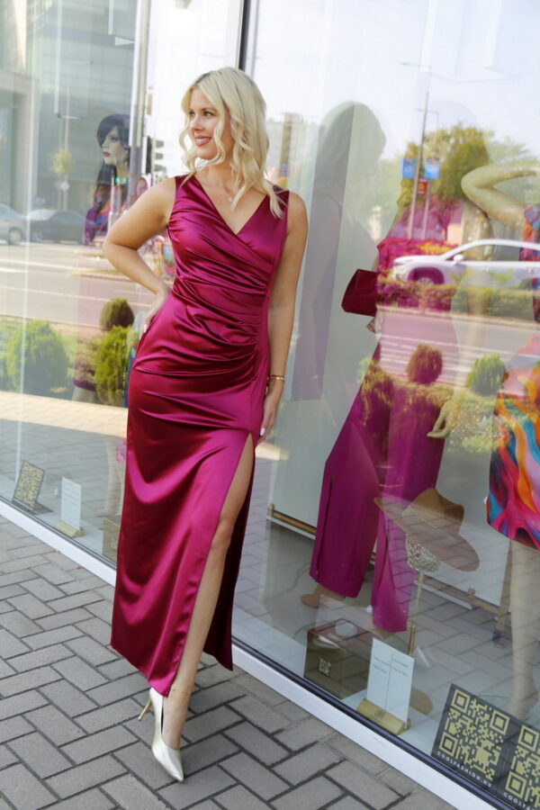 A Léda szatén maxi ruha elegáns és nőies választás különleges alkalmakra. Derékban szabott fazonja, ráncolt hasrésze és V-nyaka kiemeli az alakot, miközben a felsliccelt maxi fazon stílusos, könnyed mozgást biztosít.