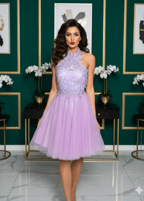 A Levendula lila görög csipkés tüll ruha egy igazán különleges darab, amelyben minden nő királynőnek érezheti magát. A görög ihletésű fazon és az ujjatlan kialakítás légies könnyedséget ad a megjelenésnek, míg a push-up-os mellrész biztosítja a nőies tartást és kényelmet.