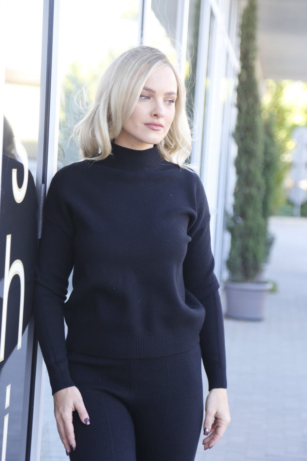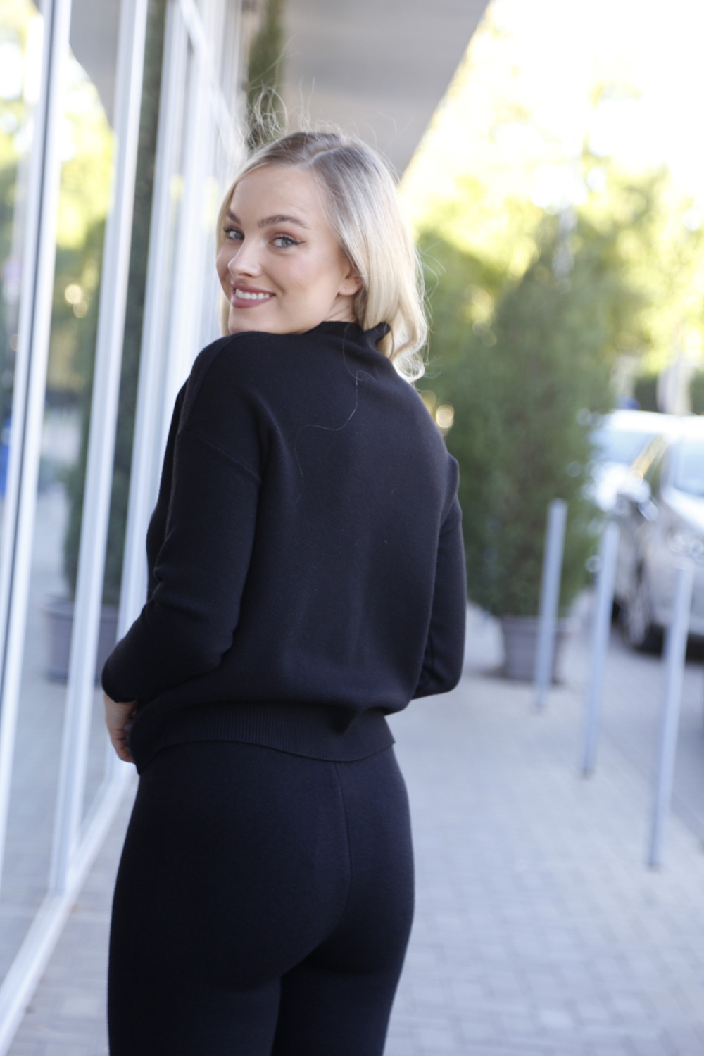 A Lillian kötött szett tökéletes választás azoknak, akik szeretik az elegáns és kényelmes összeállításokat. A szett egy magasnyakú, hosszúujjú felsőből és egy bőszárú nadrágból áll, amely együtt modern, nőies és lezseren elegáns megjelenést biztosít.