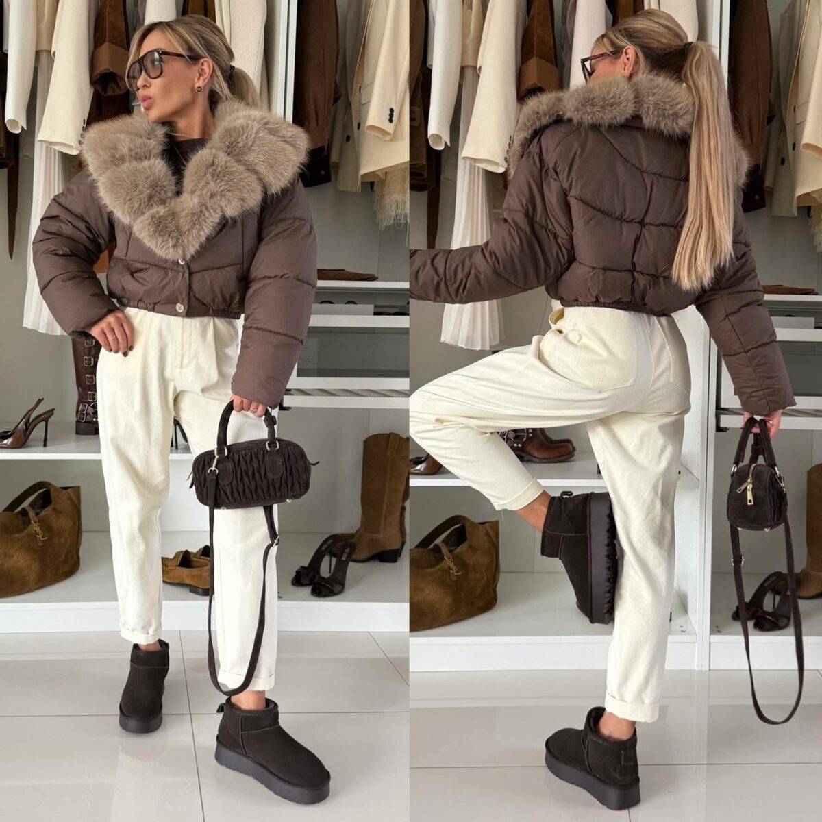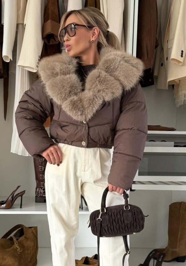 A Lina kabát ideális választás a hűvösebb napokra – puha, meleg, mégis légies darab, amely minden megjelenéshez hozzáad egy csipetnyi elegáns, prémes luxust. 🤎🧥✨