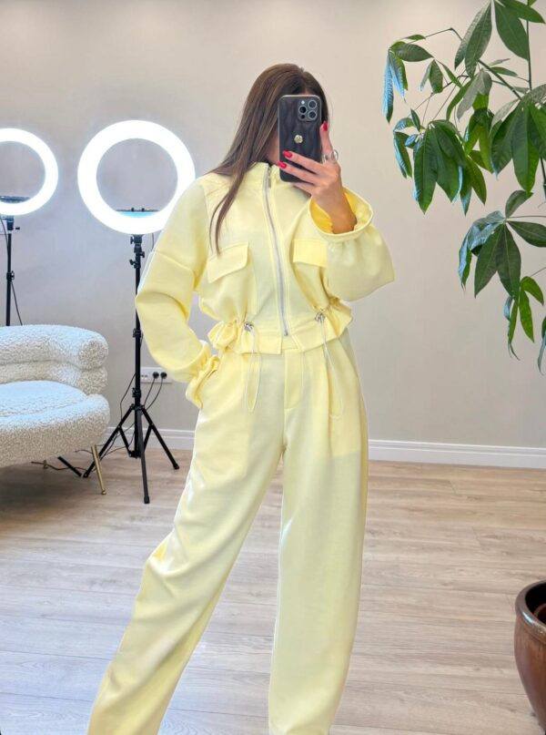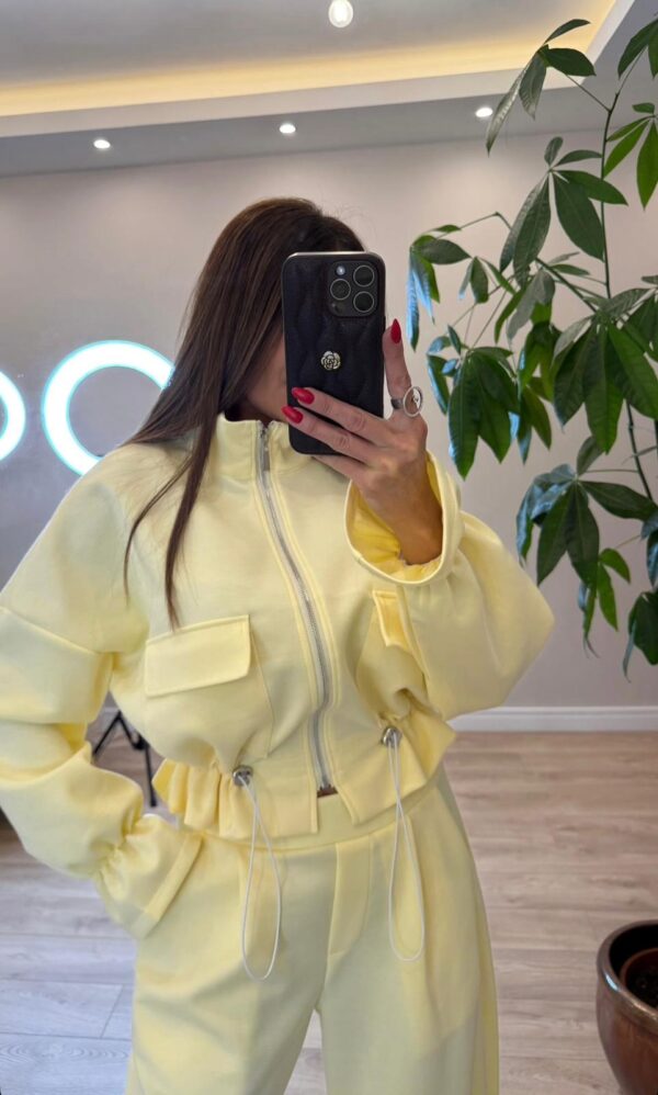 A Liorra szabadidő együttes tökéletes választás, ha egyszerre szeretnél kényelmesen és divatosan öltözni. A magas nyakú, cipzáras felső sportos megjelenést ad, miközben az összehúzható derékrész lehetővé teszi, hogy a szettet saját alakodra igazítsd. A zsebes kialakítás mind a felsőn, mind a nadrágon praktikus megoldást kínál a mindennapokban.