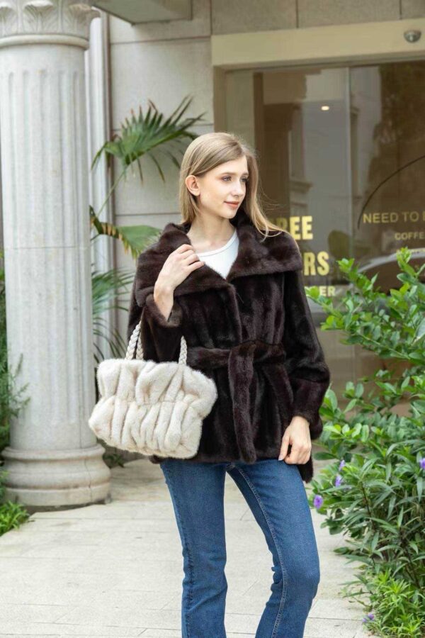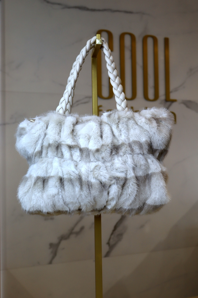 A Lora hullám szőrmés táska kistáska méretű, elegáns és stílusos kiegészítő. Gyűrt hatású műszőrméje és arany lánca különleges megjelenést kölcsönöz.