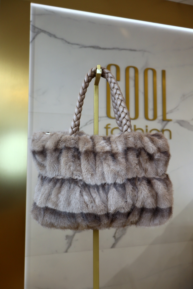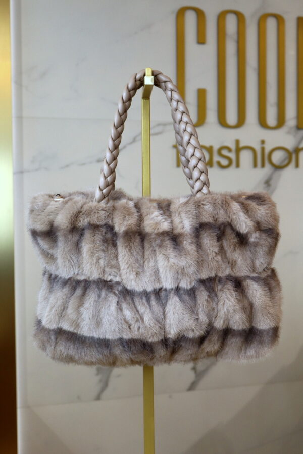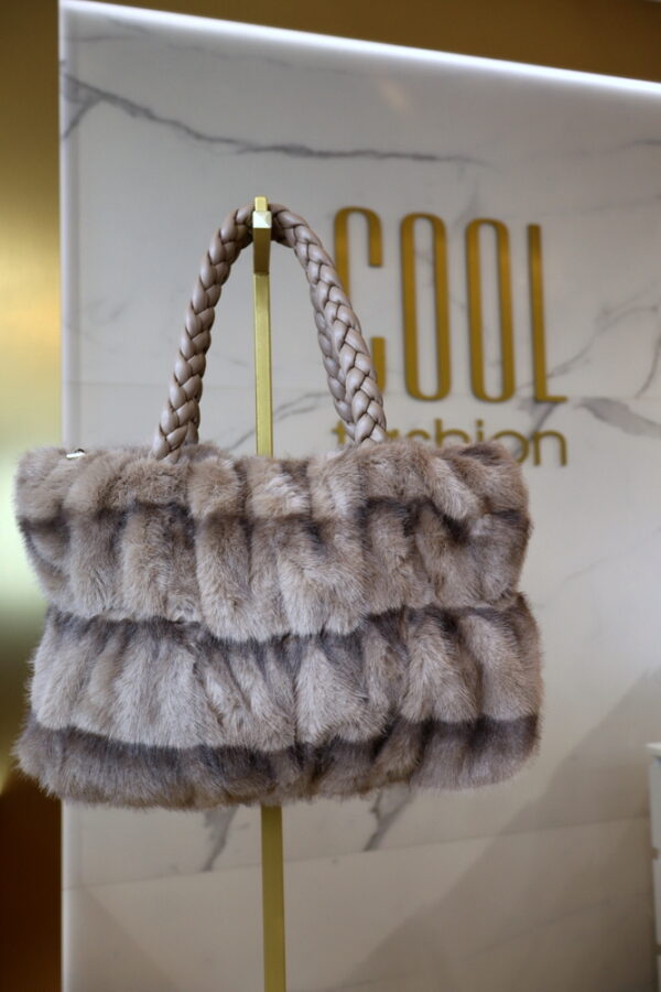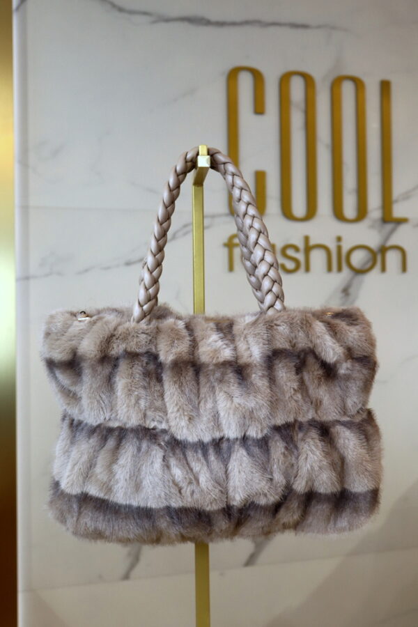 A Lora hullám szőrmés táska kistáska méretű, elegáns és stílusos kiegészítő. Gyűrt hatású műszőrméje és arany lánca különleges megjelenést kölcsönöz.