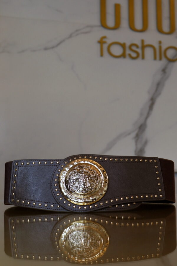 A Loretta gumis öv ideális választás mindazok számára, akik szeretnék feldobni öltözéküket egy elegáns és praktikus kiegészítővel. A széles fazon és a díszes arany csat tökéletesen kiemeli a derekat, miközben modern és nőies megjelenést biztosít.