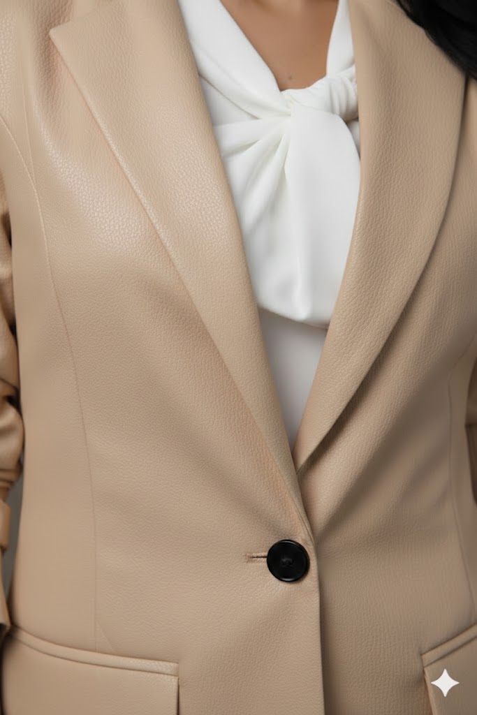 A Lurina műbőr zakó egy igazi statement darab, amely modern, mégis elegáns megjelenést kölcsönöz. A galléros, gombos fazon klasszikus zakóhatást ad, míg a műbőr anyag vagány, divatos karaktert visz az outfitedbe.