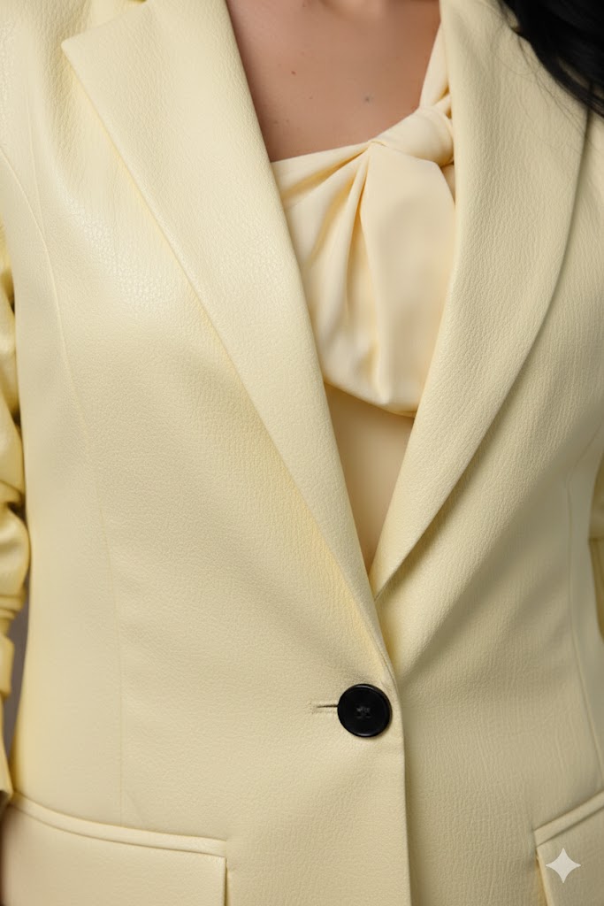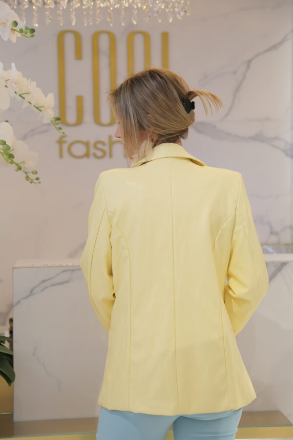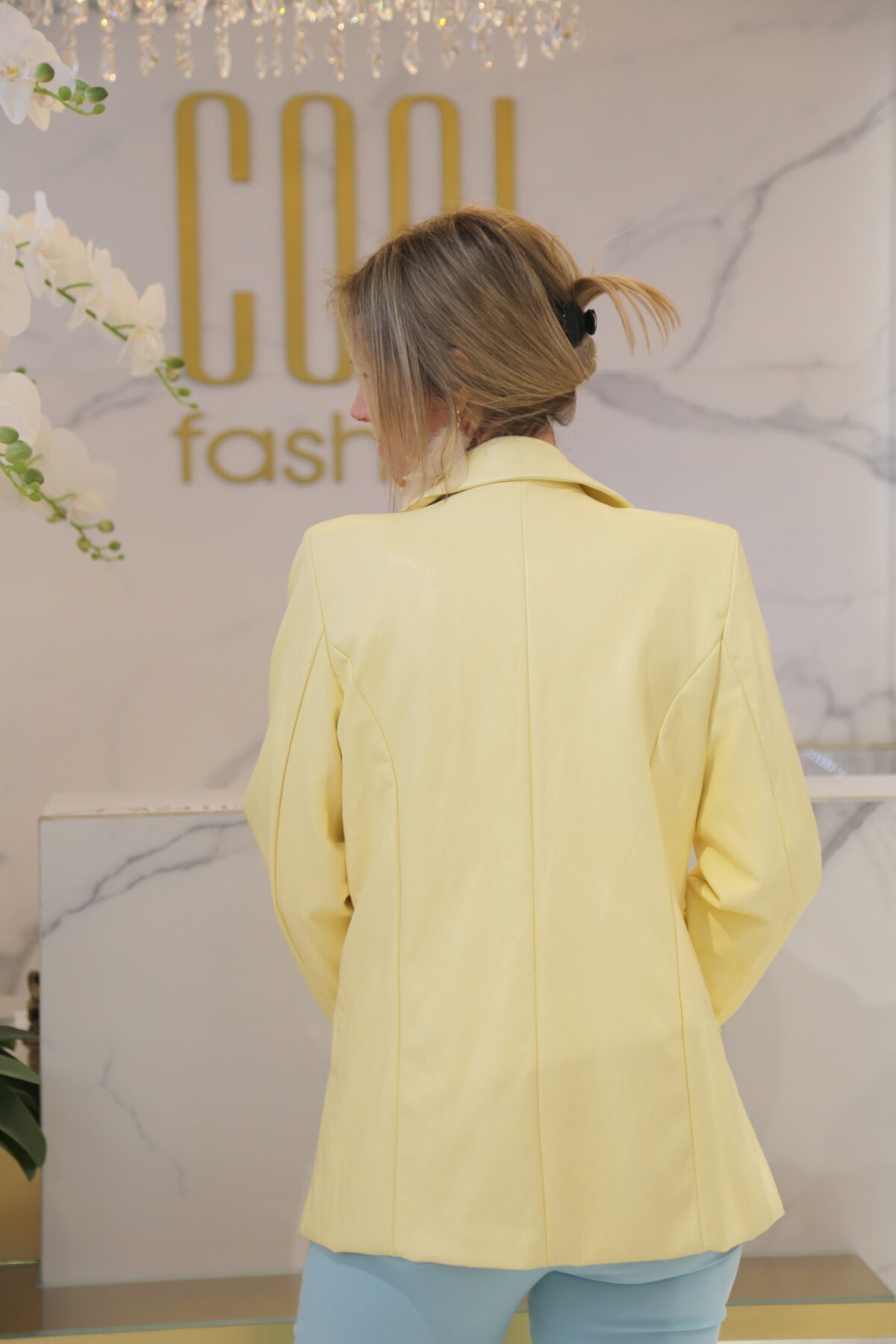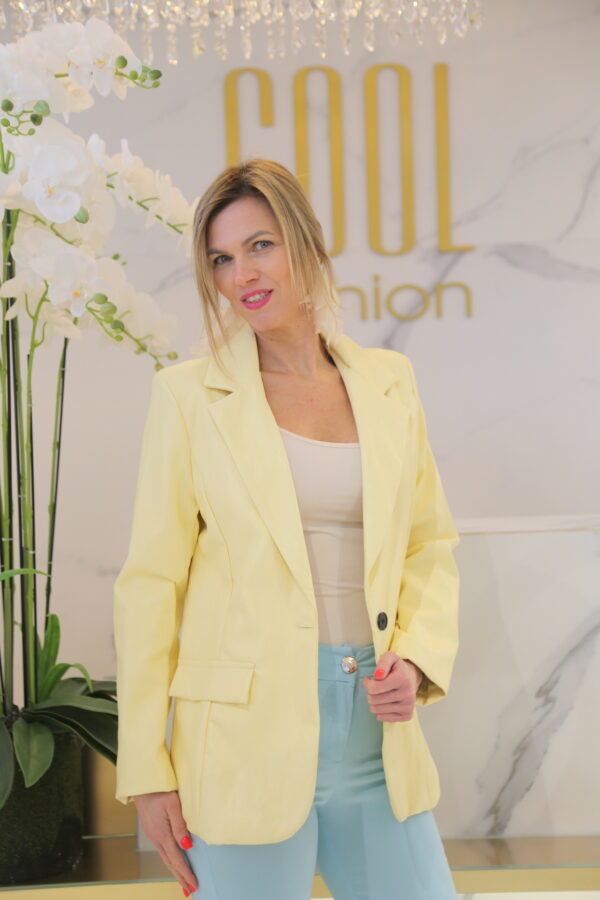 A Lurina műbőr zakó egy igazi statement darab, amely modern, mégis elegáns megjelenést kölcsönöz. A galléros, gombos fazon klasszikus zakóhatást ad, míg a műbőr anyag vagány, divatos karaktert visz az outfitedbe.