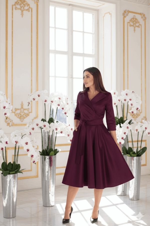 Légy magabiztos és nőies a Margó padlizsánlila ruhában, amely a klasszikus elegancia és a kényelmes viselet tökéletes ötvözete. A mellrésznél V-alakban kivágott szabás kiemeli a dekoltázst, míg a mell alatt szabott fazon gyönyörű sziluettet biztosít.