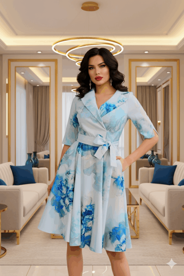 A Margó kék márvány mintás ruha elegáns szabásának köszönhetően remekül illik ünnepi eseményekre, munkába, randira vagy baráti összejövetelekre. A kényelmes, mégis csinos kialakítás biztosítja, hogy egész nap jól érezd magad benne.