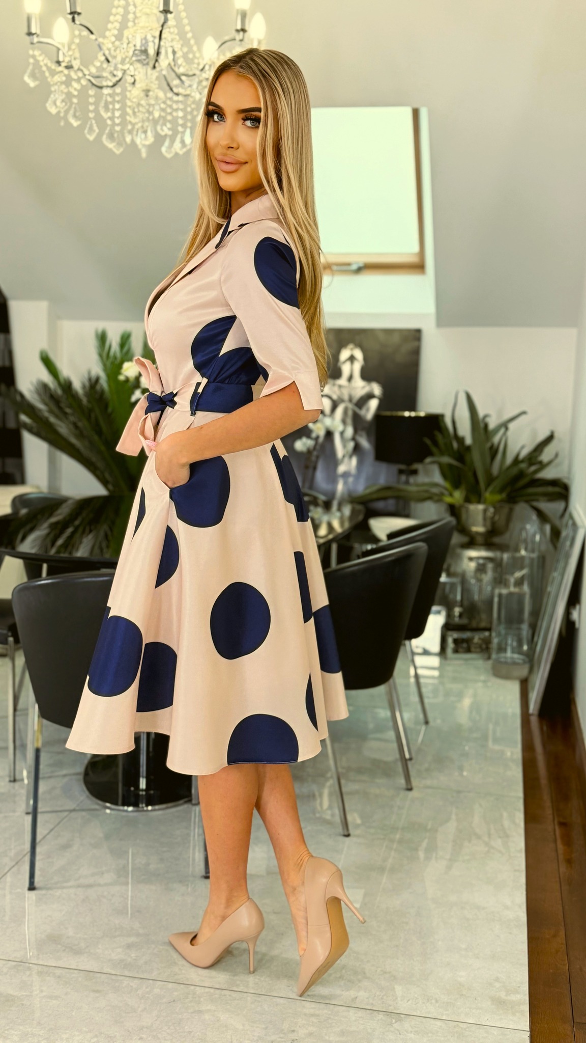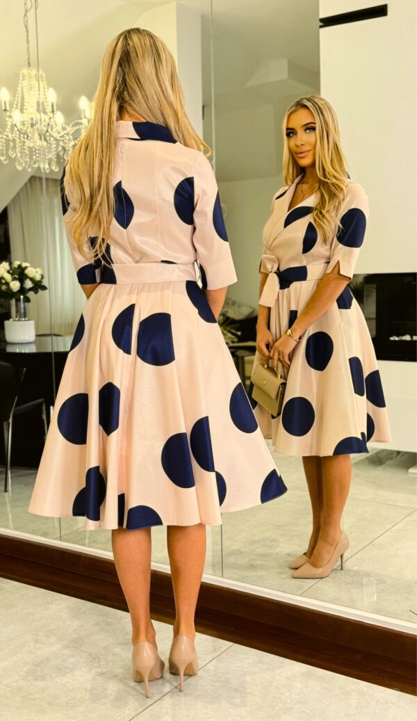 A Margó pezsgő pöttyös ruha elegáns szabásának köszönhetően remekül illik ünnepi eseményekre, munkába, randira vagy baráti összejövetelekre. A kényelmes, mégis csinos kialakítás biztosítja, hogy egész nap jól érezd magad benne.