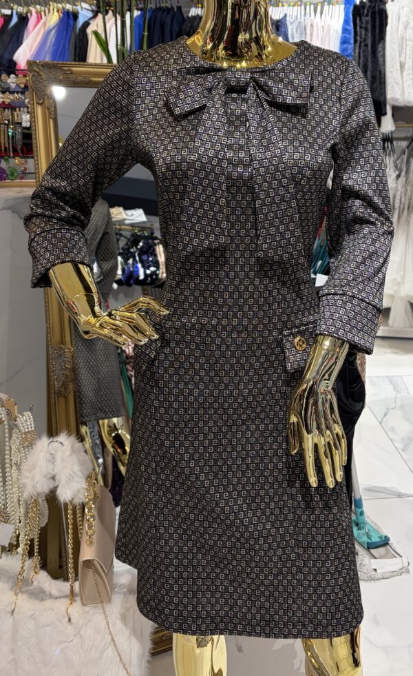 A 3/4-es ujjhossz elegáns és praktikus, nem túl meleg, mégis alkalmi hatást kelt. A hátul található cipzár megkönnyíti a felvételt. A dísz zsebek modern és divatos részletként emelik a ruha egyediségét.