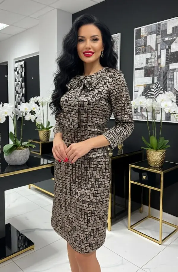 Mystic Day Luana csillogó ocelot mintás 3/4 ujjú midi ruha