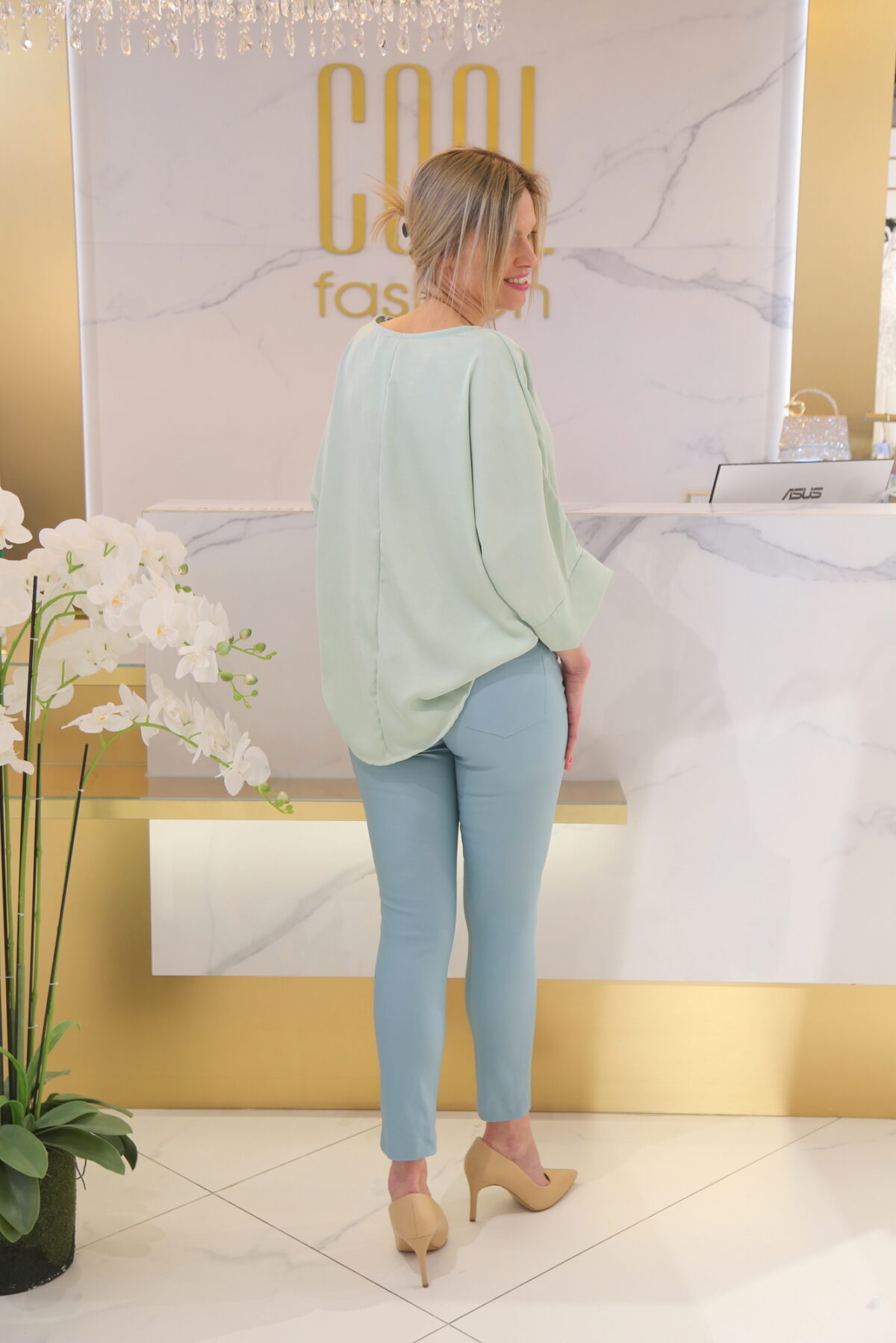 A Mesy blúz azoknak készült, akik szeretik az egyszerre kényelmes és csinos darabokat. A laza, bő fazon nem tapad a testre, mégis nőies megjelenést ad, miközben a kerekített alj finoman követi az alak vonalát. A háromnegyedes ujjak és a kerek nyakkivágás időtálló, könnyen kombinálható stílust képviselnek.