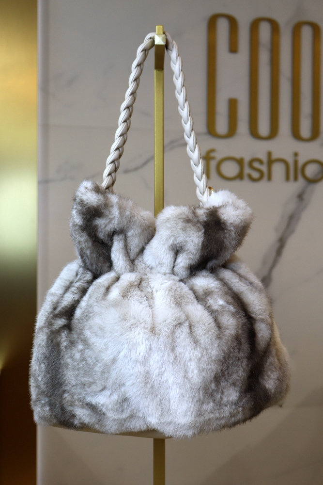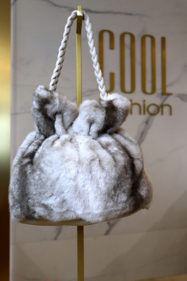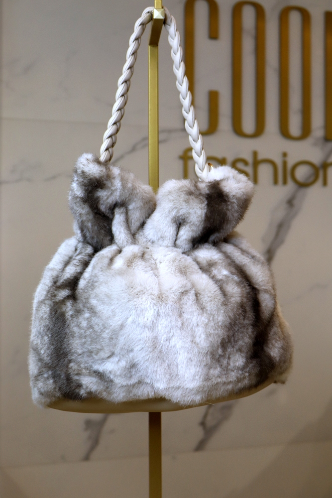 A Metta szőrmés batyu táska stílusos és praktikus kiegészítő, amely fonott fülrészével és arany lánccal elegáns, egyedi megjelenést biztosít.