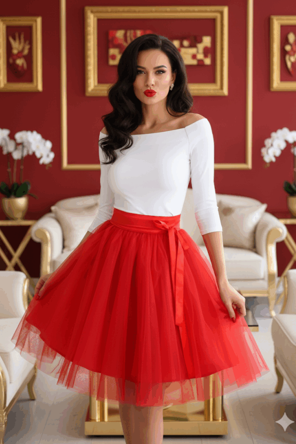 A Midi piros tüll szoknya tökéletes választás, ha valami igazán szemet gyönyörködtetőt keresel. A piros színű tüll anyag többrétegű kialakítással és szatén béléssel biztosítja az eleganciát és a kényelmet. A gumis derékrész kényelmes illeszkedést garantál, a midi hossz pedig ideális választás, ha egy kicsit visszafogottabb, mégis stílusos megjelenést szeretnél. Az S-L és XL-2XL méretezésnek köszönhetően széleskörűen elérhető, így mindenki megtalálhatja a számára legmegfelelőbb változatot.
