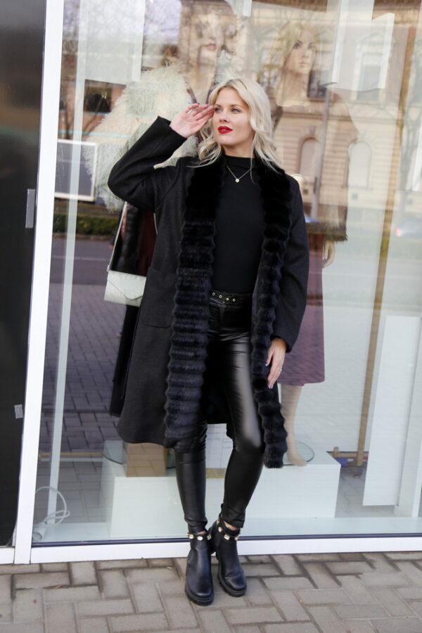 A Midnight bordázott prémes szövet kabát az igazi eleganciát hozza el a hidegebb szezonra. Prémes, bordázott anyaga puha és exkluzív, miközben a hosszított fazon nőies, karcsúsító hatást kelt.