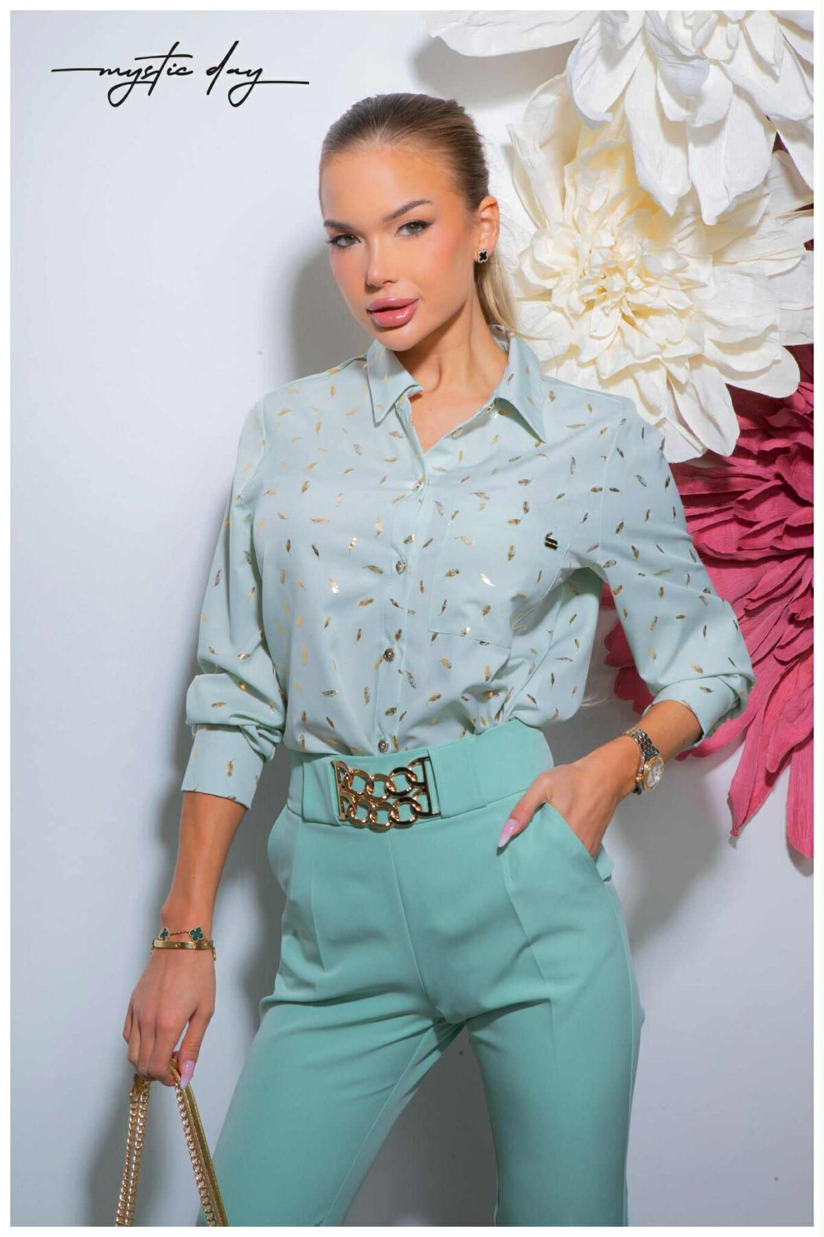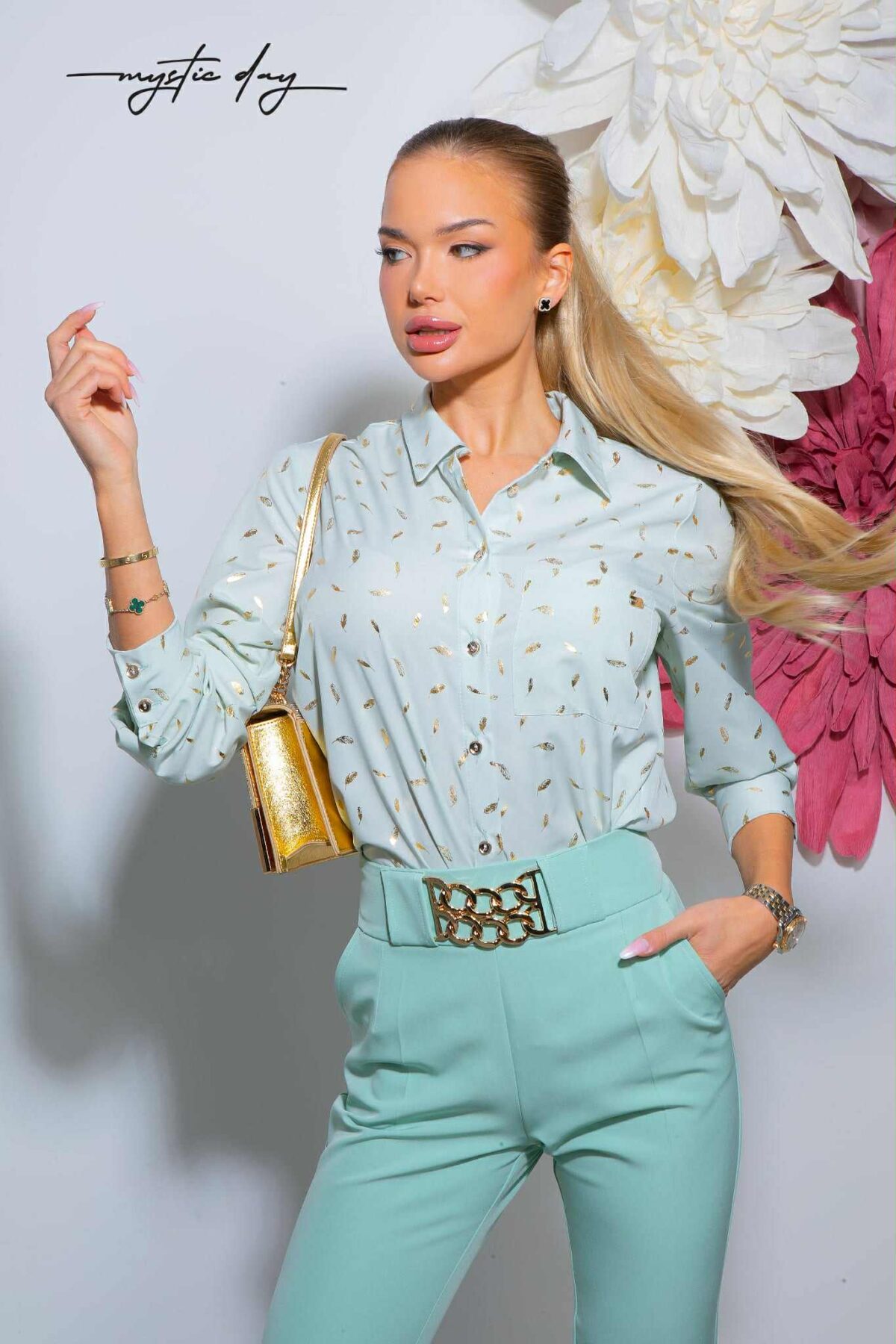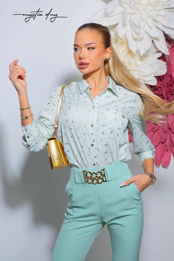 Laza szabású, nőies ing fazonú felső gyönyörű mintával, amely friss, elegáns megjelenést ad a mindennapokban és alkalmakon is.