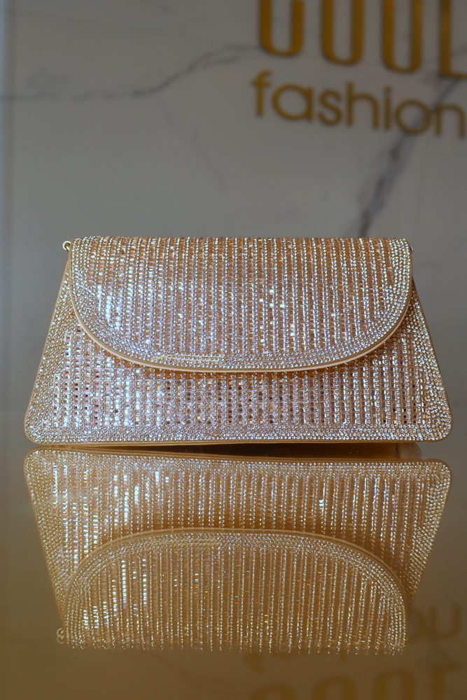 Elegáns, luxus hatású alkalmi táska, amely gazdag köves díszítésével és különleges textúrájával tökéletes kiegészítője esti és ünnepi szetteknek.
