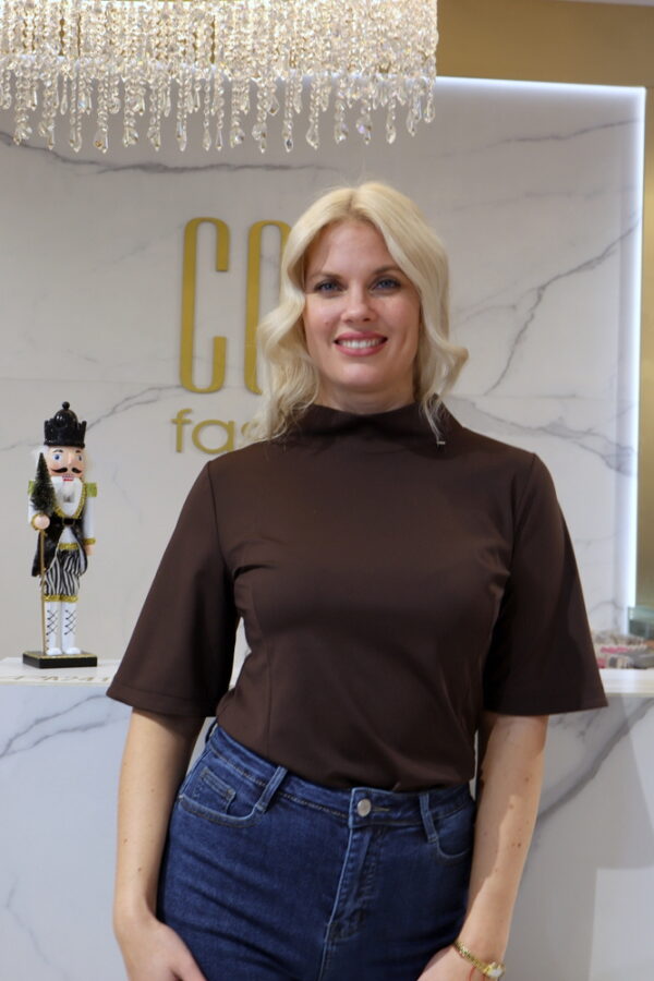 A Monaco kávébarna felső letisztult stílusa és prémium minőségű anyaga miatt remek alapdarabja lehet a ruhatáradnak. A magas nyakrész kifinomult és modern hatást kelt, miközben optikailag nyújtja a nyakat. A rövid ujjú kialakítás tökéletes a melegebb napokra, vagy réteges öltözködéshez hűvösebb időben.