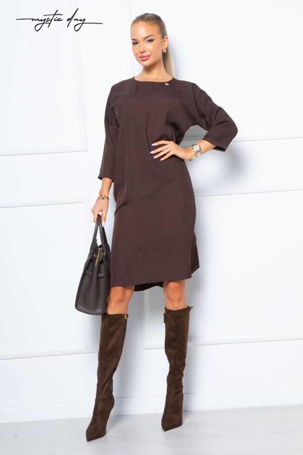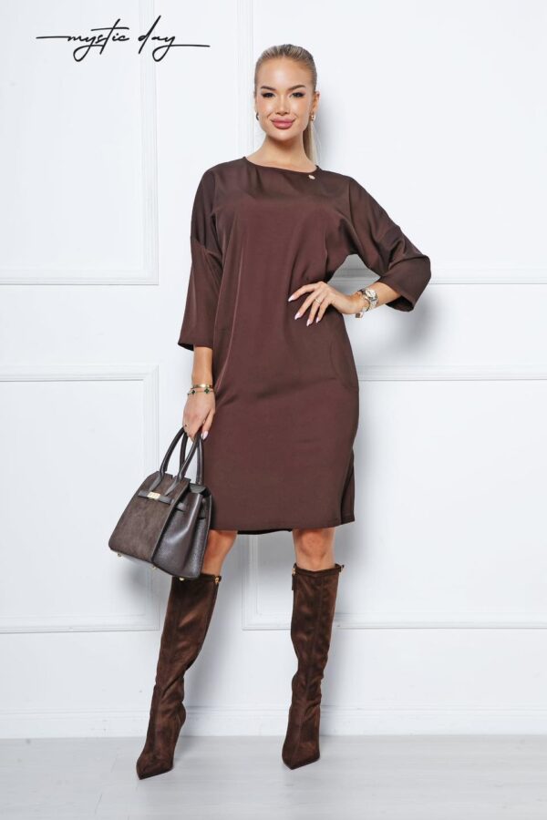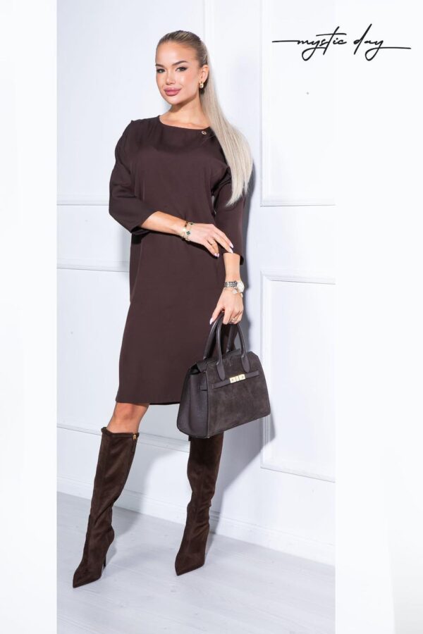 A ruha deréköve hangsúlyozza az alakot, és optikailag karcsúsít, miközben finoman elegáns megjelenést kölcsönöz. Kiváló választás üzleti találkozókra, alkalmi eseményekre vagy akár egy esti vacsorára is.