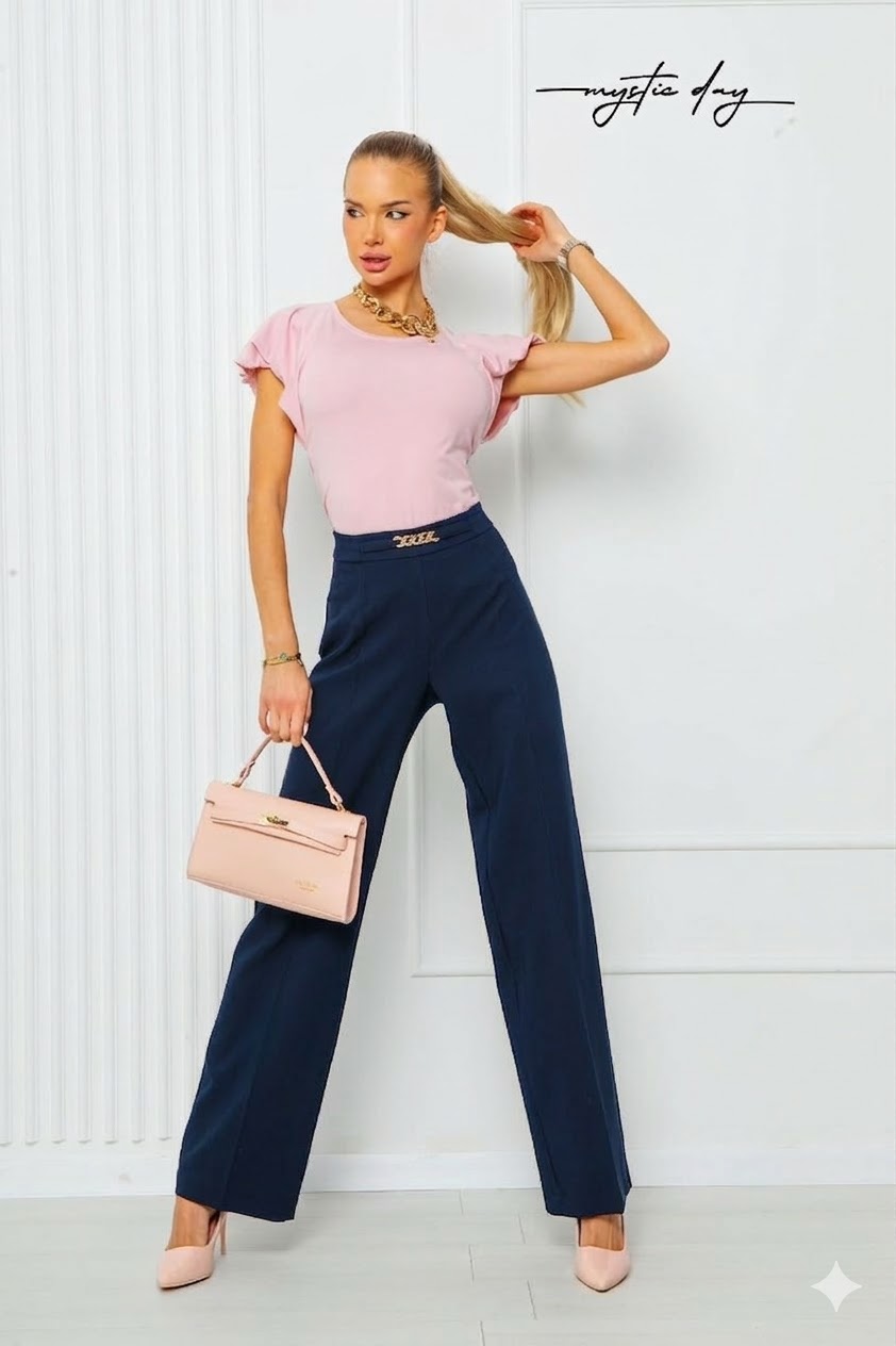 Az Angelika nadrág időtlen elegancia és modern stílus tökéletes ötvözete. A nadrág különlegessége az arany öv díszítés, amely nőies és exkluzív megjelenést biztosít, így egyszerre kifinomult és trendi választás.