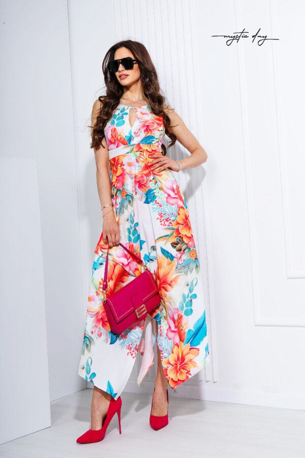 A színes Ánizs midi ruha tökéletes választás a nyári hónapokra, de akár egy rétegezett őszi összeállításban is megállja a helyét. Könnyed muszlin anyaga lágy esést biztosít, miközben absztrakt mintája friss, vidám megjelenést kölcsönöz. A csepp kivágású dekoltázs nőies részlet, amely különlegessé teszi ezt a laza, ujjatlan fazont. A midi hosszúság elegáns, mégis kényelmes, így akár hétköznapokon, akár nyaraláson is ideális viselet.