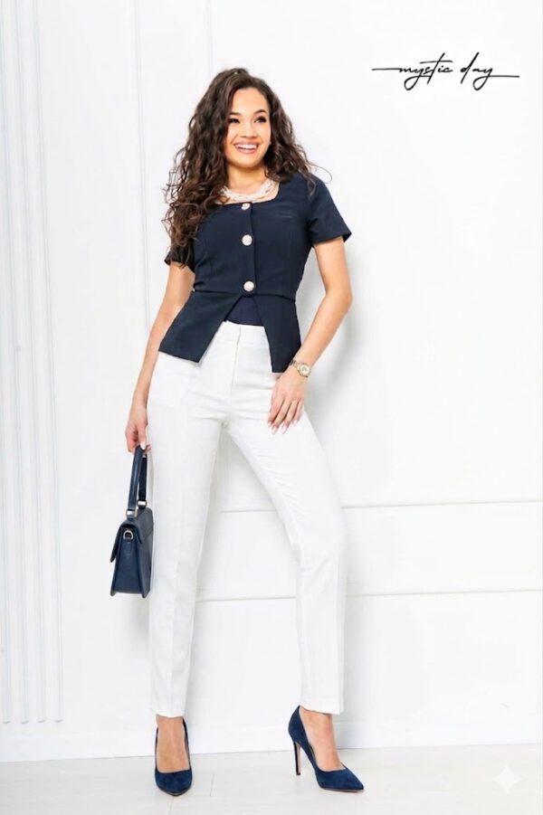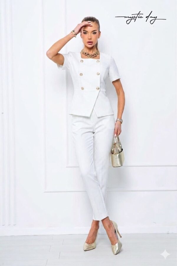 Stílustipp: Viseld fehér inggel és blézerrel a tökéletes office-lookért, vagy egy selyemhatású toppal és statement ékszerekkel, ha esti programra készülsz.