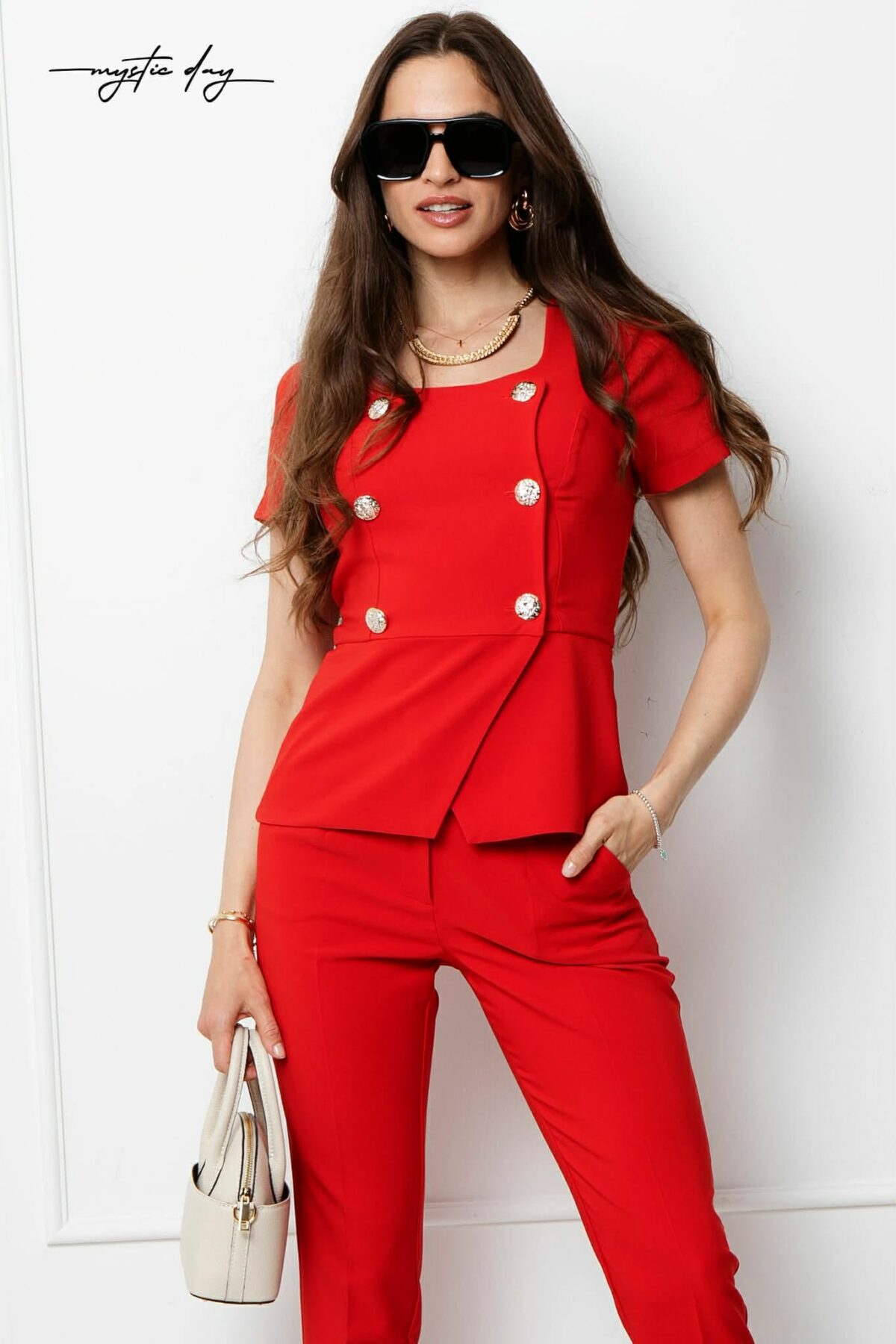 Stílustipp: Irodába válassz hozzá nude vagy fekete körömcipőt és egy strukturált táskát, randira pedig dobd fel egy finom arany ékszerszettel, hogy harmonizáljon a gombok fényével.