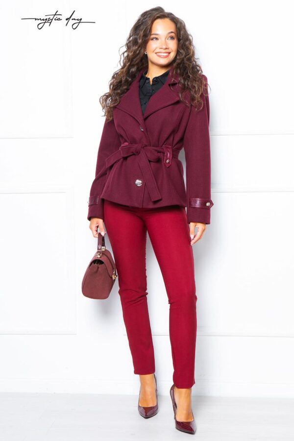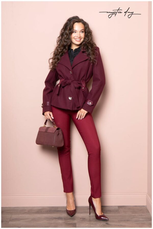 A rövid szövet kabát a klasszikus elegancia és a modern nőiesség tökéletes harmóniáját képviseli. A galléros kialakítás és az arany gombos díszítés igazi luxushatást kelt, míg a megköthető derékrész gyönyörűen hangsúlyozza az alakot. A puha szövet anyag kellemes viseletet biztosít, így a kabát nemcsak stílusos, de kényelmes is.