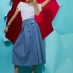 A Contessa midi szoknya a nőies elegancia és a modern trendek tökéletes ötvözete. A finom tapintású anyag prémium megjelenést kölcsönöz, miközben kényelmes viseletet biztosít a mindennapokban. A gombos díszítés és a dísz zsebes kialakítás egyedi, luxus hatású részleteket ad a szoknyának.