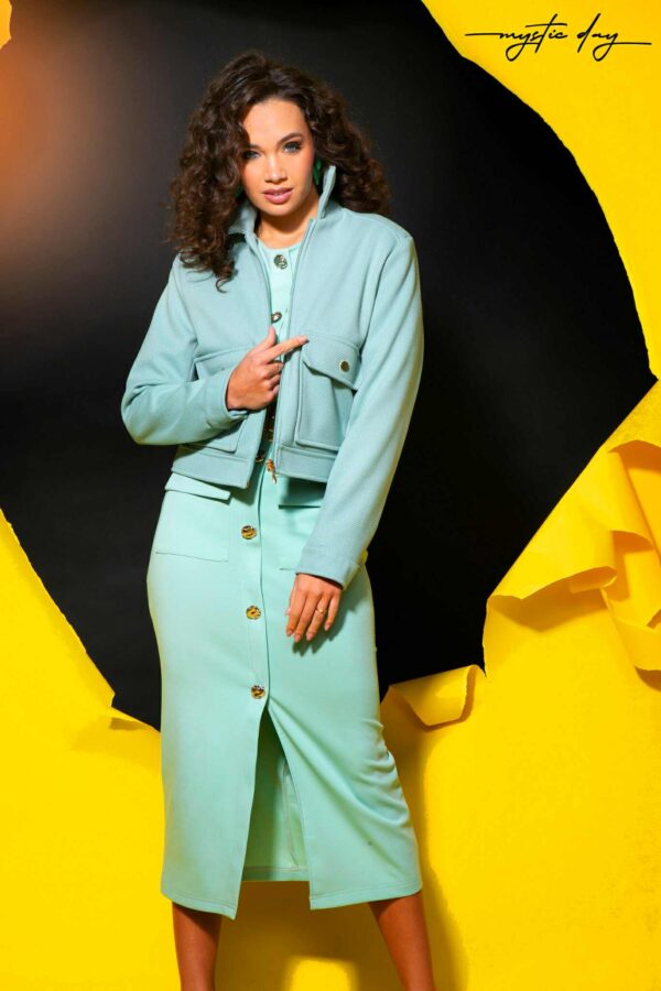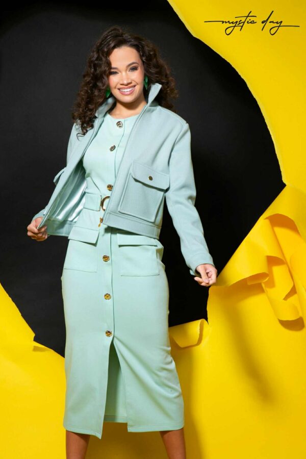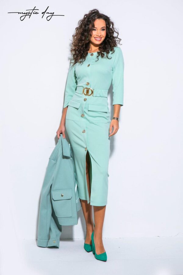 A Mystic Day Fanni midi ruha a nőies elegancia és a hétköznapi kényelem tökéletes egyensúlyát kínálja. A midi hossz és az elöl sliccelt kialakítás harmonikusan ötvözi az eleganciát a praktikus viselettel, miközben a színe friss és divatos megjelenést biztosít.