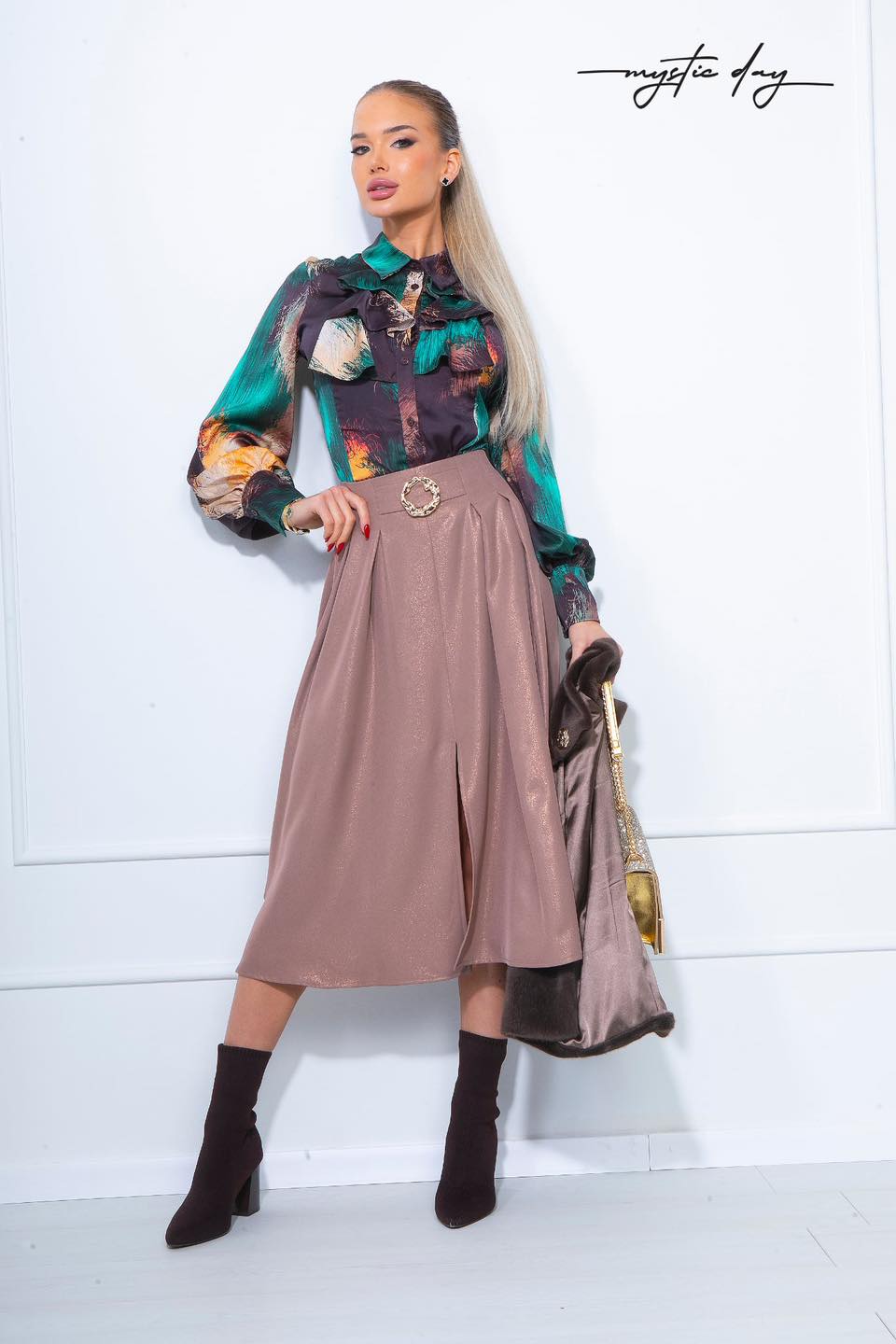 A Frézia midi szoknya eleganciát és modern stílust sugároz. A klasszikus midi hossz kifinomult megjelenést biztosít, miközben kényelmes viseletet nyújt. A fénylő arany övcsat egyedi, luxus hatást keltenek, amelyek feldobják a letisztult darabot.