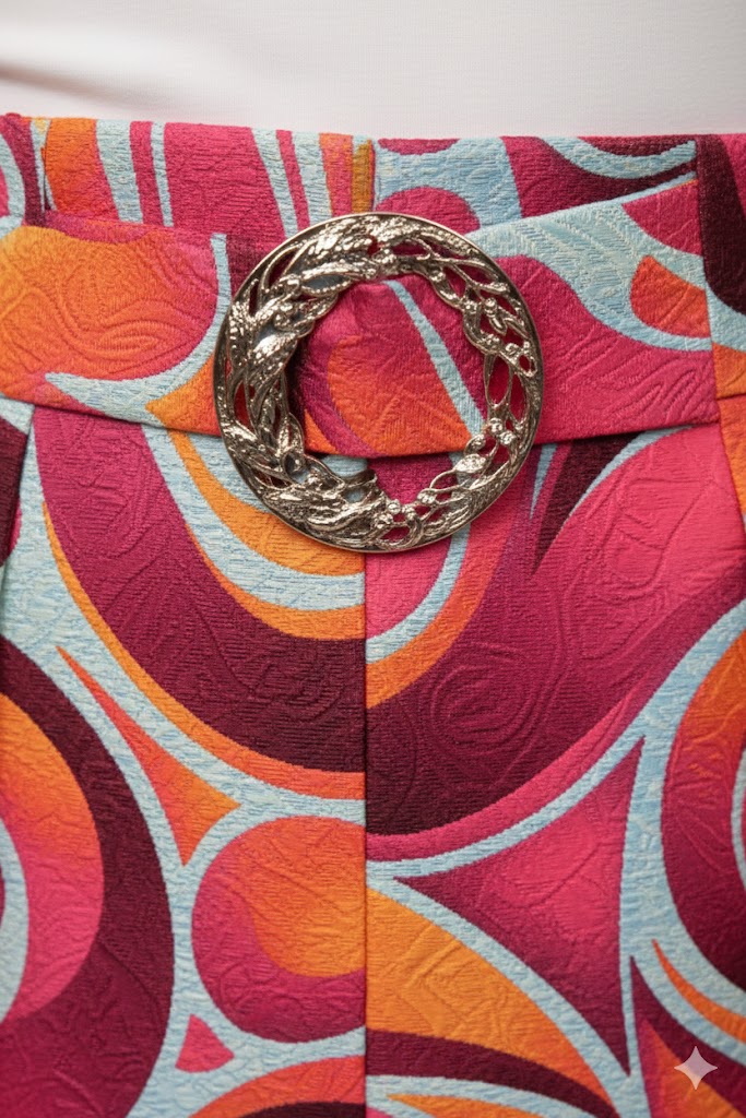 A szoknya praktikus zsebekkel rendelkezik, így nemcsak elegáns, hanem kényelmes és funkcionális darab is. A tartozék öv szépen kiemeli a derékvonalat, karcsúsító hatást keltve, ami még nőiesebb sziluettet eredményez.