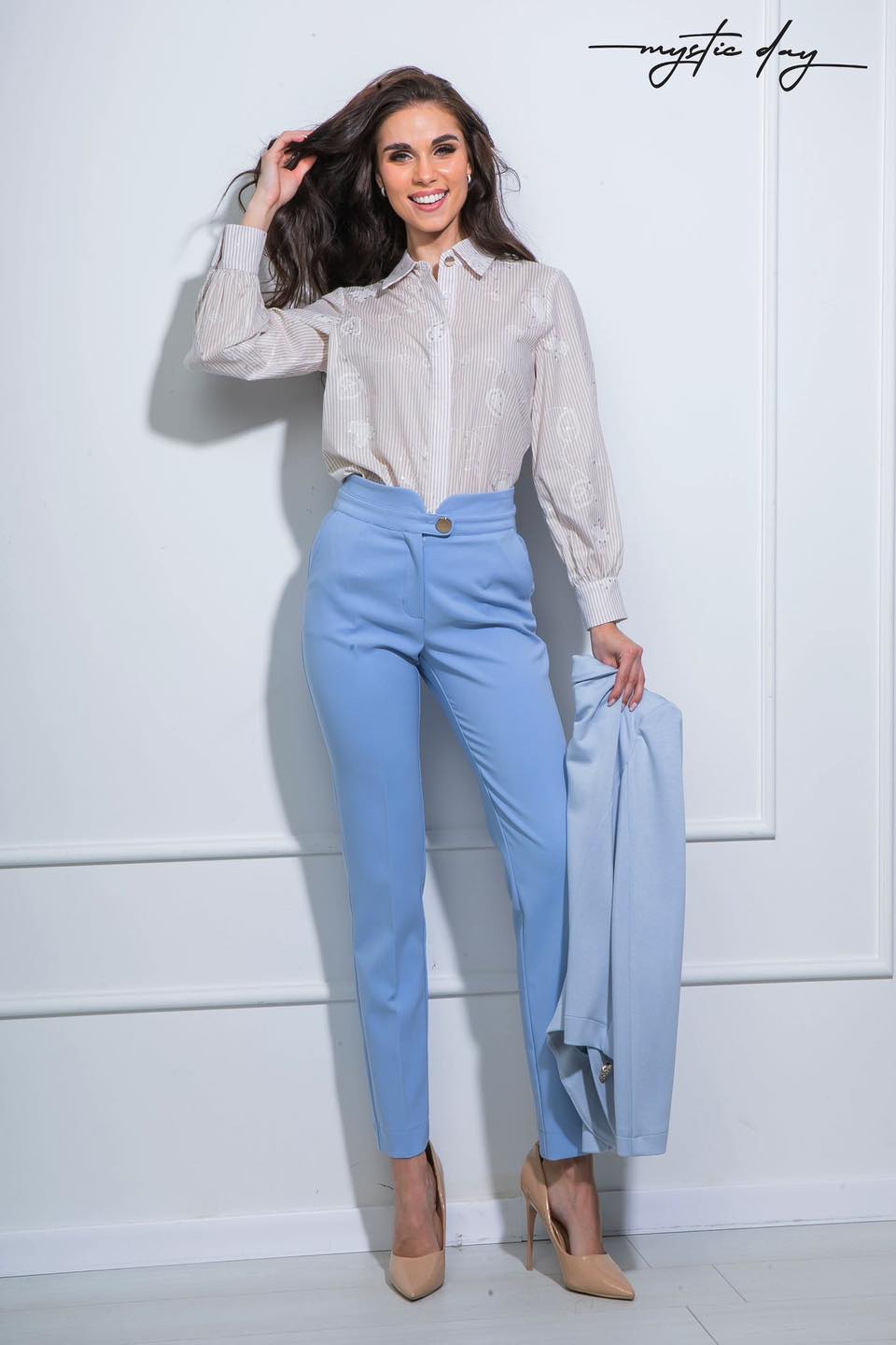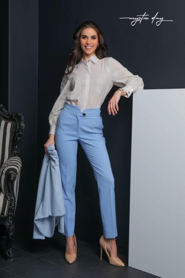 A Mystic Day Fruzsina nadrág a kifinomult megjelenés és a kényelmes viselet tökéletes kombinációja. Magas derekú szabása optikailag nyújtja a lábakat és szépen formálja a sziluettet, míg az élre vasalt vonal elegáns, rendezett összhatást ad. Az egyenes szárú fazon időtálló választás, amely szinte minden alkaton előnyösen mutat.