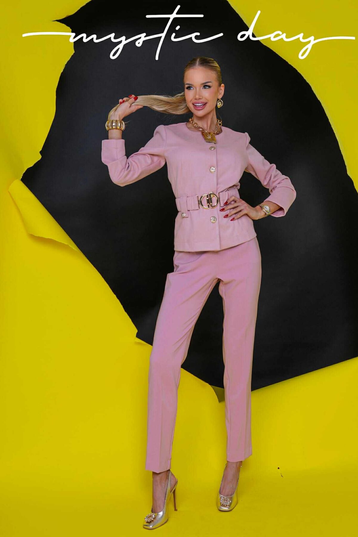 A Mystic Day Fruzsina nadrág a kifinomult megjelenés és a kényelmes viselet tökéletes kombinációja. Magas derekú szabása optikailag nyújtja a lábakat és szépen formálja a sziluettet, míg az élre vasalt vonal elegáns, rendezett összhatást ad. Az egyenes szárú fazon időtálló választás, amely szinte minden alkaton előnyösen mutat.