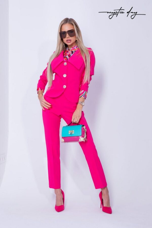 A Mystic Day Fruzsina nadrág a kifinomult megjelenés és a kényelmes viselet tökéletes kombinációja. Magas derekú szabása optikailag nyújtja a lábakat és szépen formálja a sziluettet, míg az élre vasalt vonal elegáns, rendezett összhatást ad. Az egyenes szárú fazon időtálló választás, amely szinte minden alkaton előnyösen mutat.