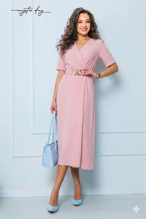 Mystic Day Gréti mályvarózsaszín rövid ujjú midi ruha