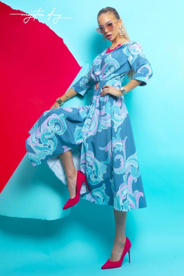 A Mystic Day – Gréti midi ruha egy igazán nőies és elegáns választás, amely tökéletesen kihangsúlyozza az alakot. A lágyan átlapolt mellrész és a derékrésznél szabott fazon kiemeli a nőies vonalakat, míg a háromnegyedes ujj és a midi hossz letisztult, kifinomult megjelenést biztosít.