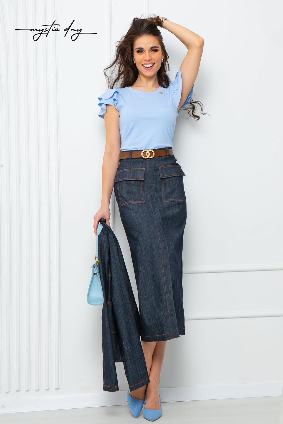 A Mystic Day Jana rövid ujjú felső tökéletes választás, ha egy letisztult, mégis különleges darabot keresel. A kerek nyakkivágás és az elasztikus anyag kényelmes, jól hordható alapot ad, míg a vállrészen elhelyezett finom fodrok nőies, romantikus megjelenést kölcsönöznek. Könnyedén kombinálható szoknyával, elegáns nadrággal vagy akár farmerrel is, így munkába, hétköznapokra és alkalmi megjelenésekhez egyaránt remek választás. Egy sokoldalú felső, amely stílusosan emeli ki a nőies vonalakat.