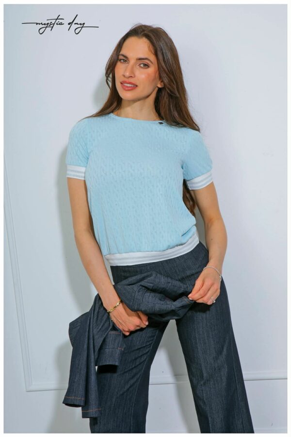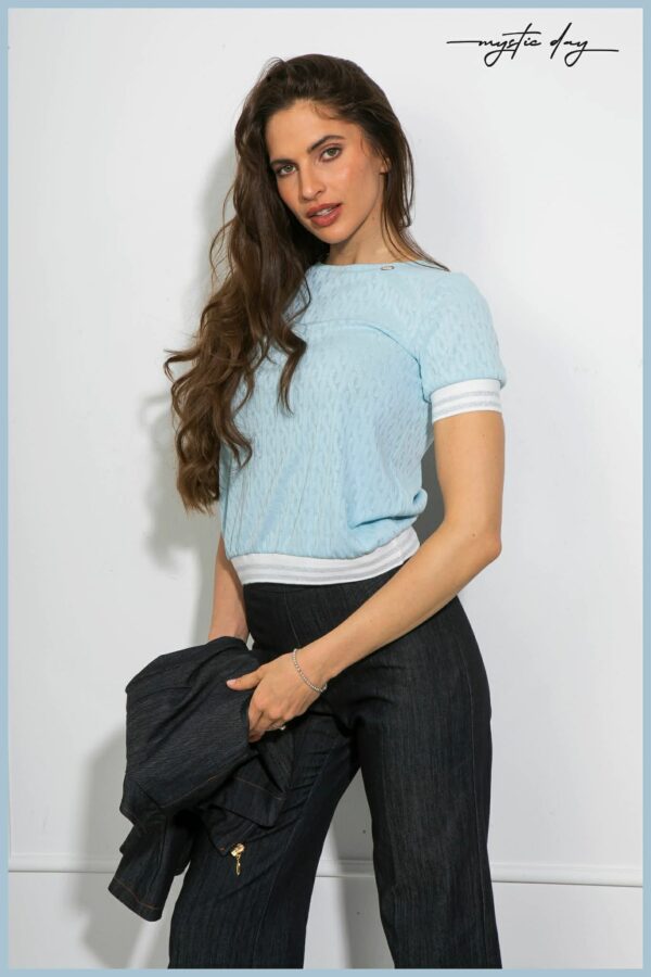 Ha olyan felsőt keresel, ami egyszerre kényelmes és látványosan nőies, ez a kereknyakú, dombornyomott mintás darab telitalálat. A bővebb fazon laza eleganciát ad, a texturált minta pedig finoman különlegessé teszi – így pillanatok alatt összerakhatsz vele egy stílusos szettet.