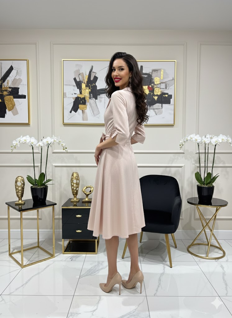 A Lucia Beige Ruha egy igazi stílusikon, amely a klasszikus modern szabással készült. Tökéletes választás, ha egy elegáns, mégis kényelmes ruhára van szükséged bármely alkalomra. A ruha finom vonalai és nőies szabása garantáltan kiemelik a legjobb formádat.