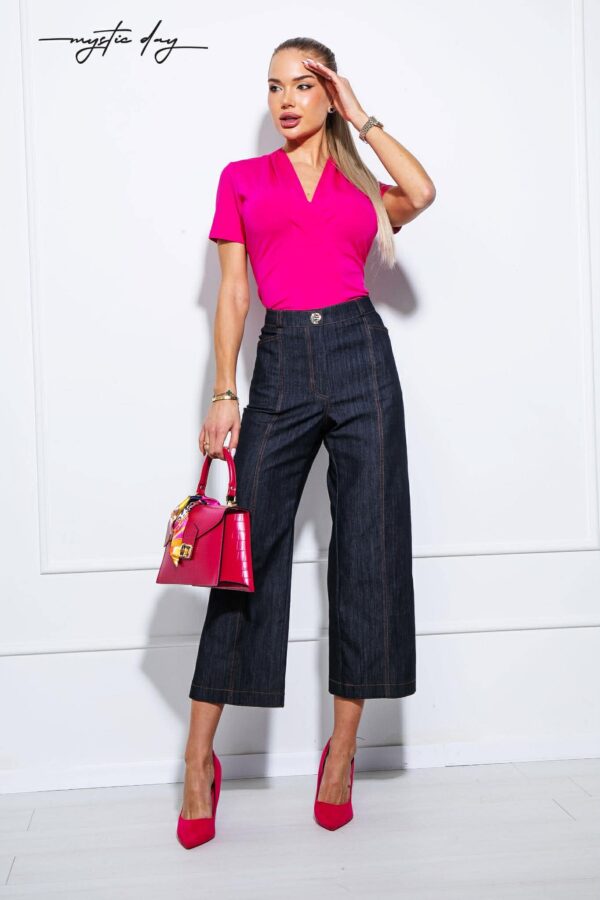 A Nina rövid ujjú felső igazi alapdarab a nőies gardróbban, amely egyszerre elegáns és könnyen kombinálható. Az átlapolt mellrész és a V kivágás harmonikus együttese szépen hangsúlyozza a dekoltázst, miközben a mell alatti szabás optikailag karcsúsítja az alakot.