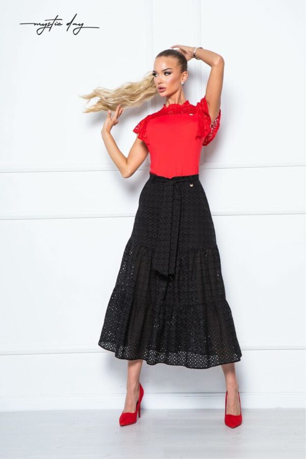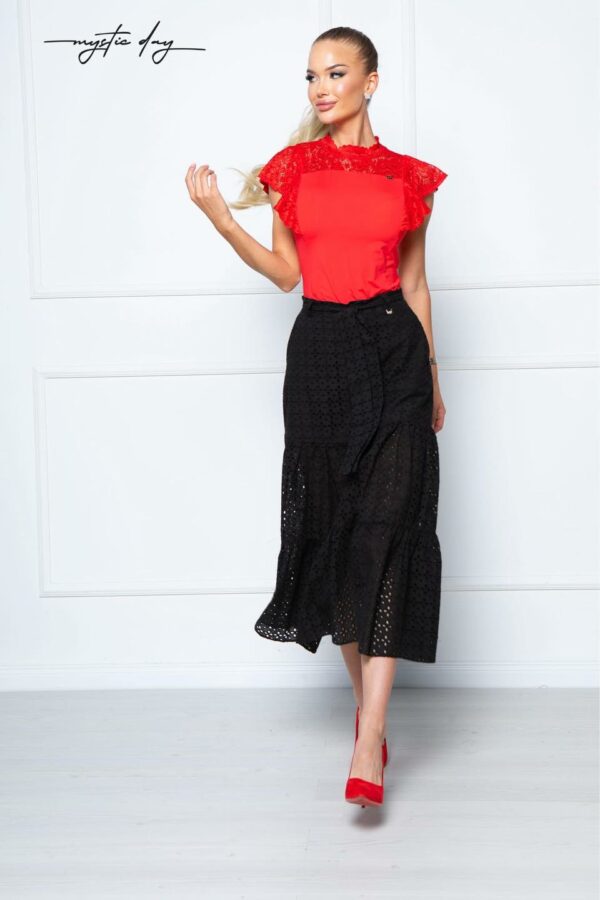 Ha egy igazán nőies, mégis modern felsőt keresel, ami egyszerre elegáns és kényelmes, ez a magasnyakú, csipkés darab telitalálat. A fodros vállrész játékos romantikát ad, a szűk fazon pedig szépen kiemeli az alakot – pont annyira, amennyire szeretnéd. Tökéletes választás irodába egy elegáns nadrággal, randira szoknyával, vagy egy alkalmi eseményre blézerrel rétegezve.