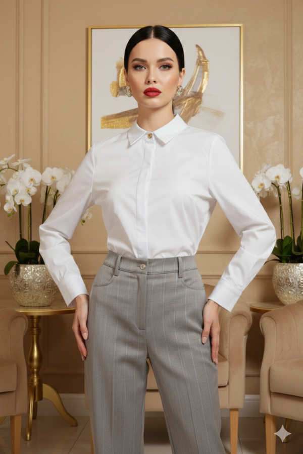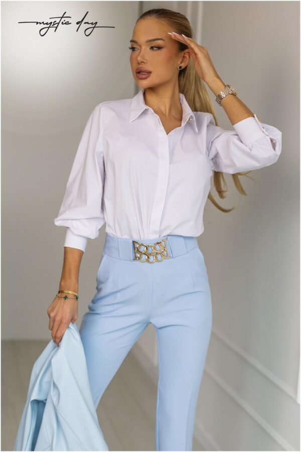 A Patrícia blúz egy klasszikus darab modern köntösben. A gombos kialakítás lehetővé teszi a kényelmes viseletet és a könnyű öltözködést, míg a galléros nyakrész elegáns megjelenést biztosít, így ideális irodai viselethez is.